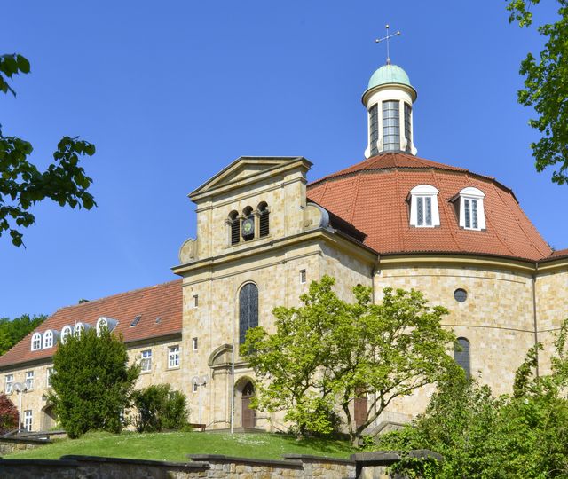 Wanneer je Holzhausen bereikt, wordt je blik direct naar de koepel van de kloosterkerk van Ohrbeck getrokken.
