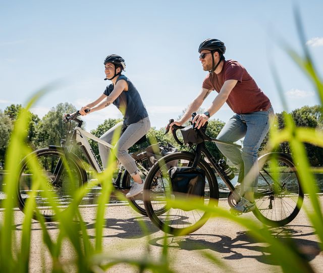 Vervolgens rijd je langs Gut Arenshorst bij Bohmte en door het heuvelachtige Ostercappeln. Het mooiste waterkasteel van het Osnabrücker Land bevindt zich in het daaropvolgende Schledehausen. Voordat de tocht in Osnabrück ten einde loopt, ligt nog een mooie rit door het natuurpark en de gemeente Belm voor je, waar de legende van Widukind werd gedoopt.